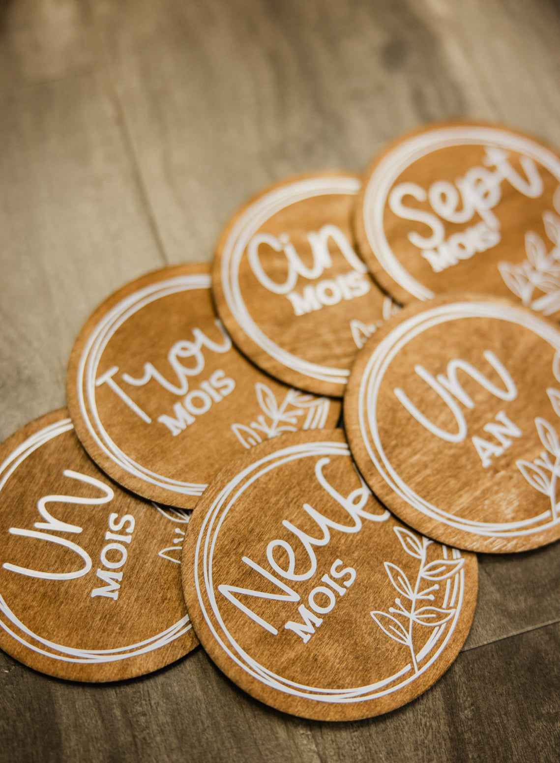 Le cadeau parfait pour une nouvelle maman đRondelles teintes et application de notre design fait sur Cricut ici au QuĂ©bec.Â
